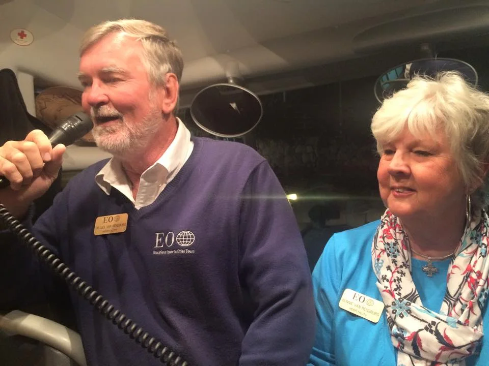 /We'd like to introduce you to Lee and Bonnie Van Rensburg. They have served as EO hospitality staff in the Holy Land, on Journeys of Paul Cruises and much more. Visit the Holy Land this winter and you may see them at your hotel in the Galilee!